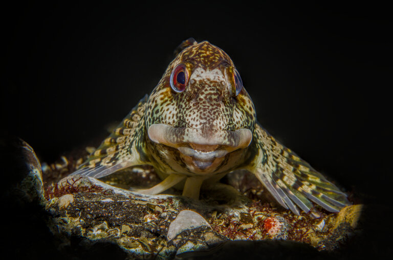 Die eerste duik valt een beetje tegen. We zijn uitgeput van de vermoeiende reis en het gehuurde duikpak is behoorlijk aan de ruime kant. Ondanks de aangename watertemperatuur van 23°C krijgen we het daardoor vrij snel koud. Het valt ons ook op dat het onderwaterleven niet zo heel uitbundig is. Veel scholen vis, maar verder redelijk kale rotsen. Dat wordt nog een stevige uitdaging om geschikte macro-onderwerpen te vinden. Gelukkig is het niet allemaal kommer en kwel. De grote tandbaarzen zijn imposant en helemaal niet schuw. We moeten wel even geduld uitoefenen, want de Zweden hebben ze als eerste gespot. Zeker iets om rekening mee te houden tijdens de competitie, want op 30m diepte tikt de klok snel. Gelukkig zien we even verderop nog een grote rog passeren. Allemaal perfecte onderwerpen voor mijn groothoeklens.