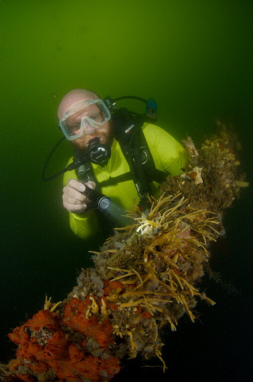 Model (Mike Pellens) tussen mossel hangculturen